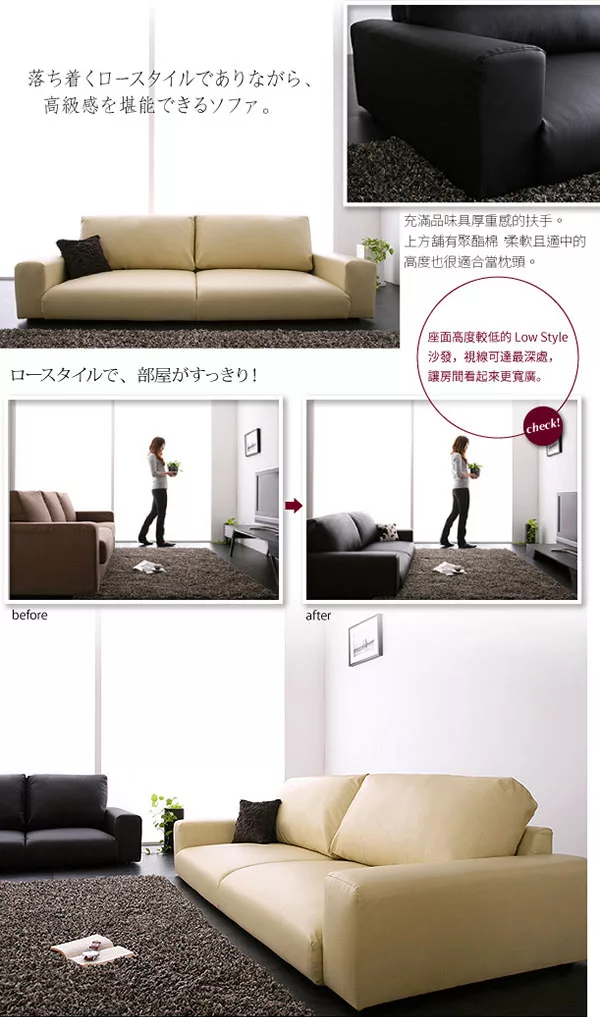 JP Kagu 日系2人座-雙人座皮質落地沙發(二色)米色 評價