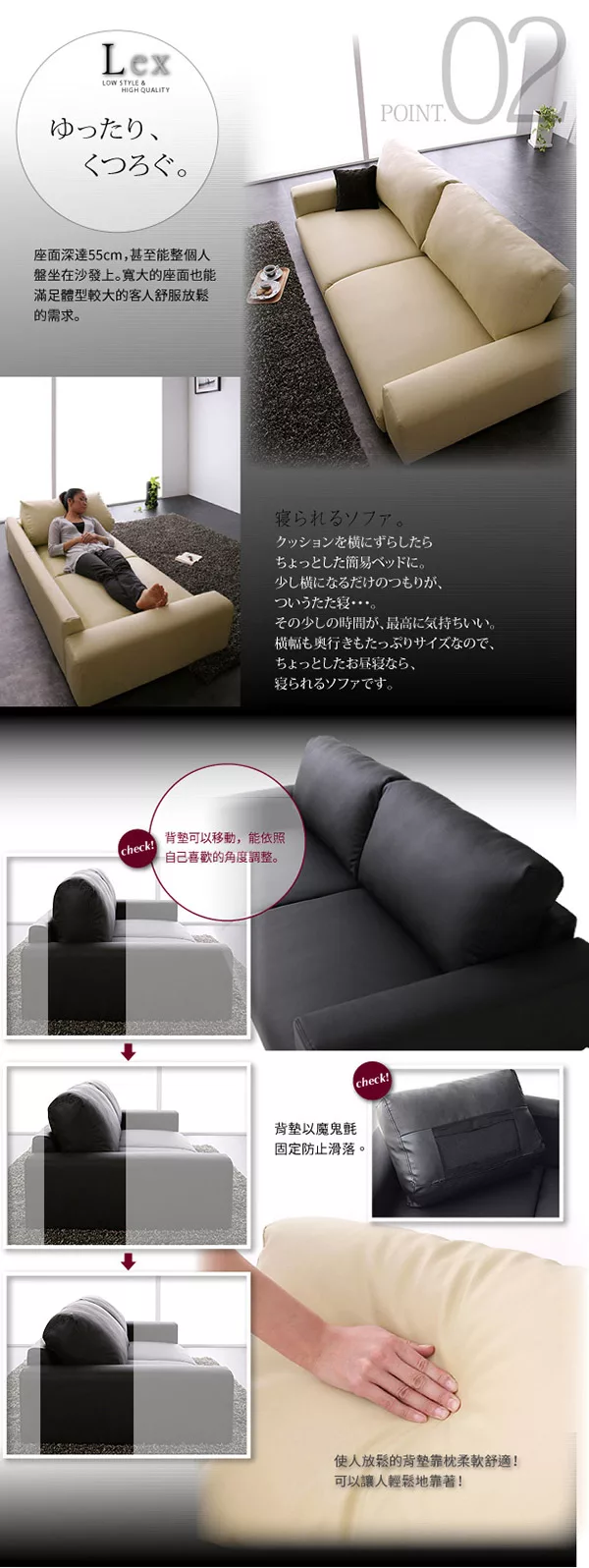 JP Kagu 日系2人座-雙人座皮質落地沙發(二色)米色![]()